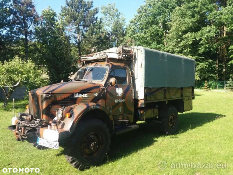Opis: Gaz 63, 1955 r. Gaz 63 pochodzący jeszcze w fabryki im. Mołotowa w ZSRR), pierwsza rejestracja to 01.01.1955 r. Zarejestrowany pojazd specjalny (brak podatku drogowego), poj. 3480 cm, silnik dolnozaworowy benzynowy, oryginalny , rzędowy, sześciocylindrowy. Auto po całkowitym remoncie, na chodzie, zarejestrowane, opłacone. W ramach remontu zrobionom.in. nowe hamulce (pompa hamulcowa, szczęki, cylinderki), zrobione resory, przekładnia kierownicza (chodzi teraz leciutko pomimo braku wspomagania), mosty uszczelnione po wymianie wszystkich płynów, oleju w silniku, skrzyniach i mostach, nowe opony, nowa paka dębowa z ławkami, elektryka sprawna, wszystkie światła, nowa plandeka tel: 607 626 528